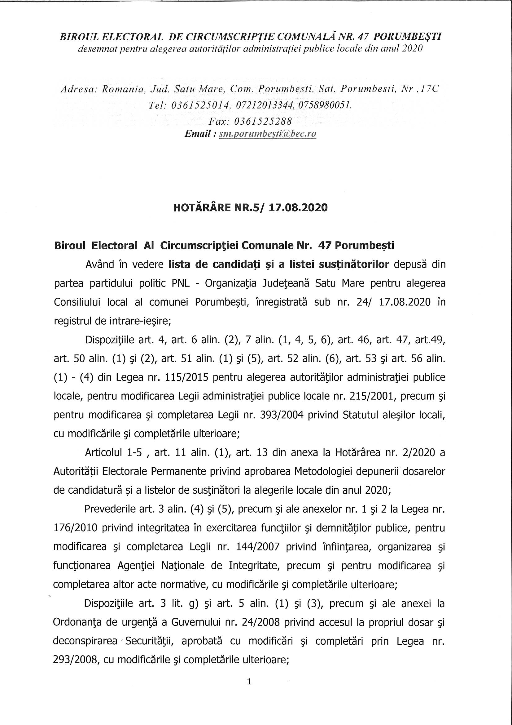 17 aug. Biroul Electoral Al Circumscriptiei Comunale nr. 47 Porumbesti 17.08.2020-2 Posted at 15:41h in Anunturi by lacikasimon HOTĂRÂRE 5 PROCES VERBAL 17.08.2020/25 Descarcare: PDF: HOTĂRÂRE 5 PROCES VERBAL 17.08.2020-25 Print page