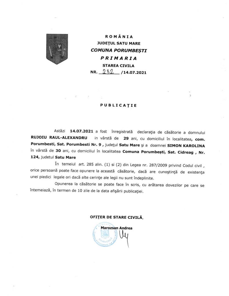 14 iul. Casatoria 14.07.2021 Posted at 08:49h in Anunturi, Publicatii de casatorie 2021 by lacikasimon Descarcare pdf: Casatoria 14.07.2021 Print page