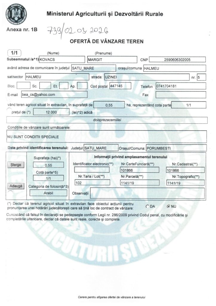 04 mart. Oferta de vanzare teren Kovacs Margit Posted at 12:29h in Anunturi by lacikasimon Descarcare pdf: oferta kovacs margit 2 of kovacs margit 22 Print page