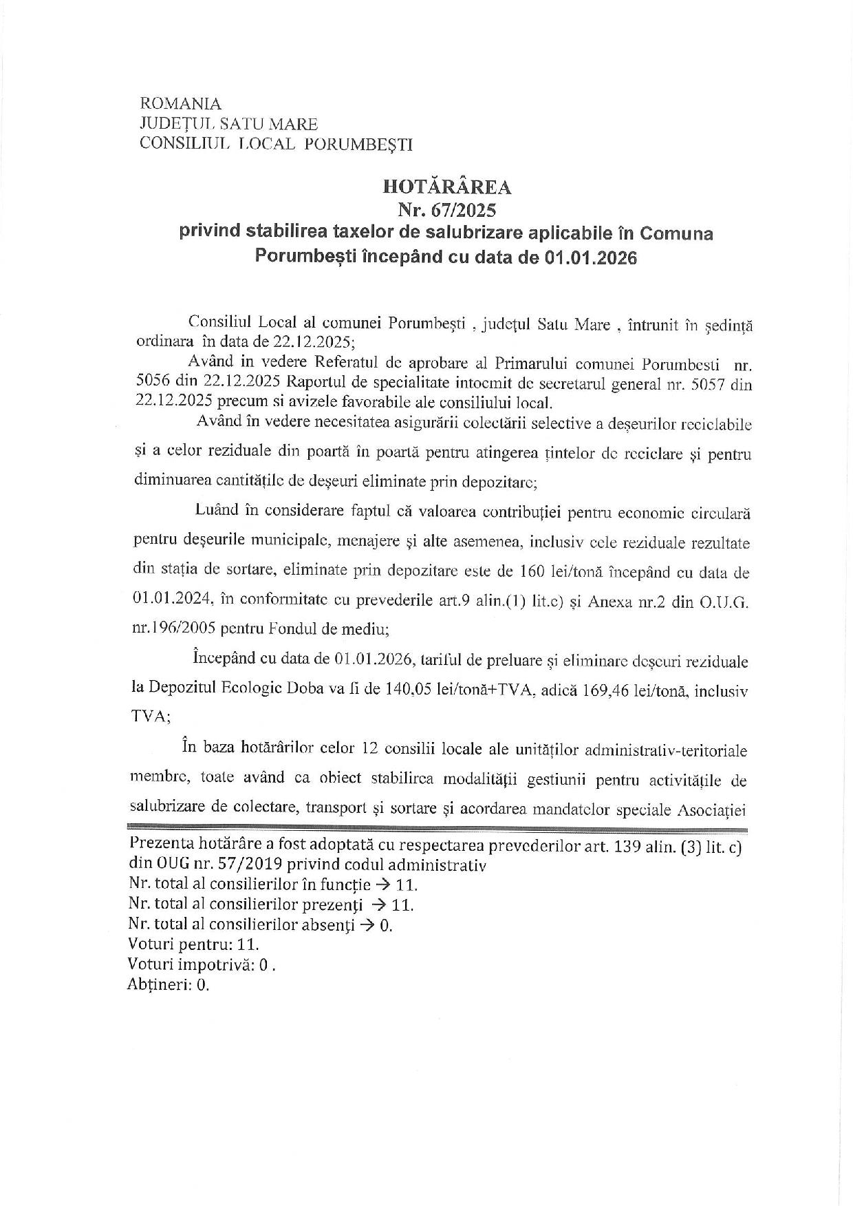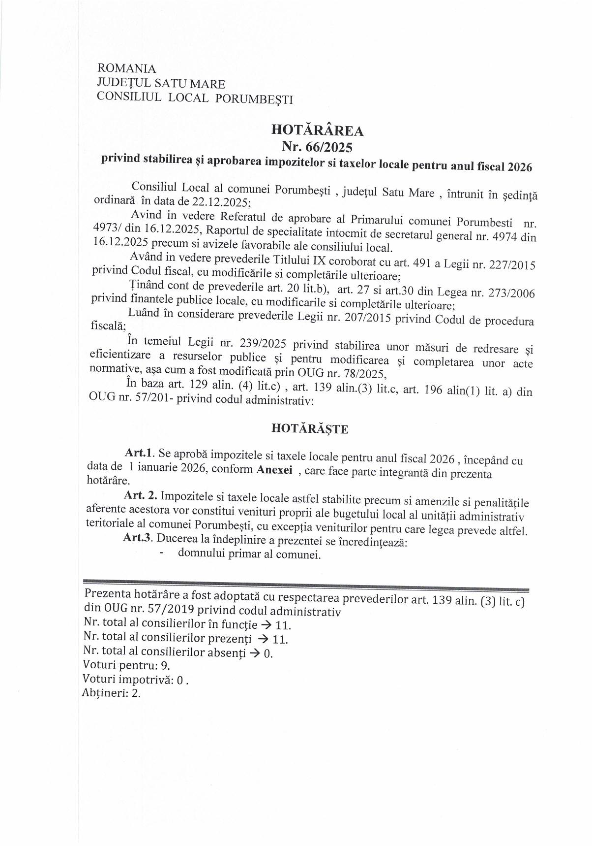 23 dec. Hotararea nr. 66/2025 Posted at 09:54h in Hotarari ale consiului local Hotararea nr. 66/2025... Read More